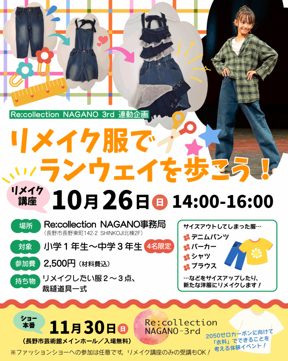 ※ファッションショーの参加は任意です。リメイク講座のみ参加でもOKです!